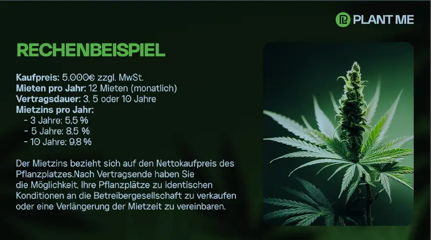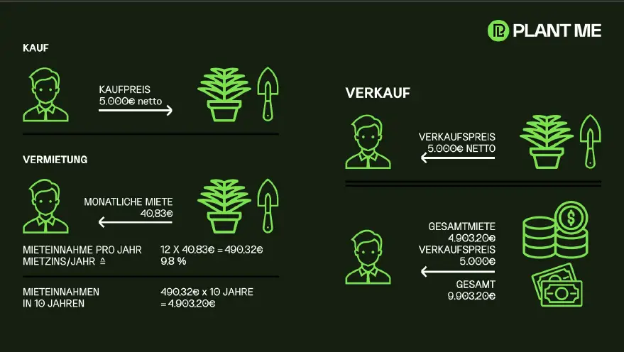 Growing ist das perfekte Beispiel, um zu Vermieten. Dabei kaufe ich einen Teil der Pflanzung, den Pflanzplatz und vermietete diesen langfristig 5–10 Jahre an den Erzeuger. Solange also der Vertrag mit einer solventen Firma abschlossen wird, hält sich das Risiko für den Käufer in Grenzen und die Renditen sind nahezu zweistellig.
